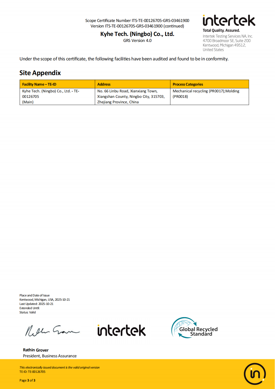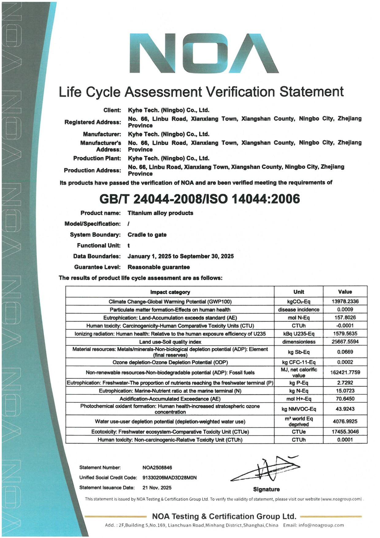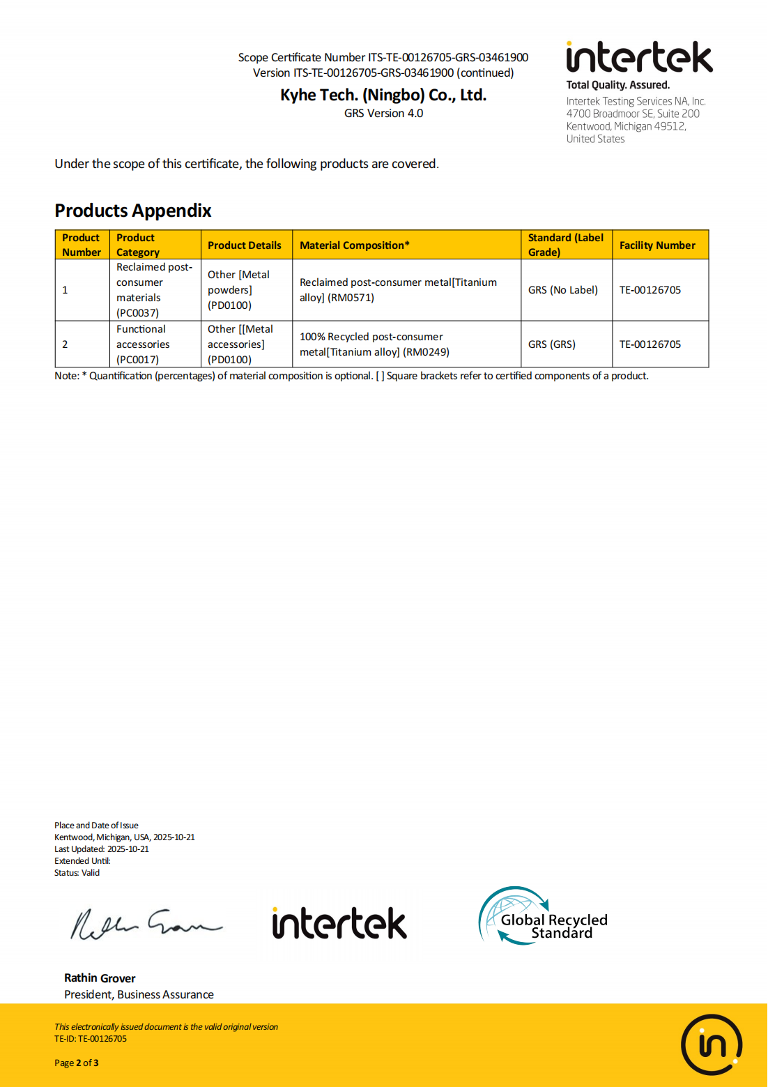 • Achieved GRS certification for 100% titanium alloy recycling
