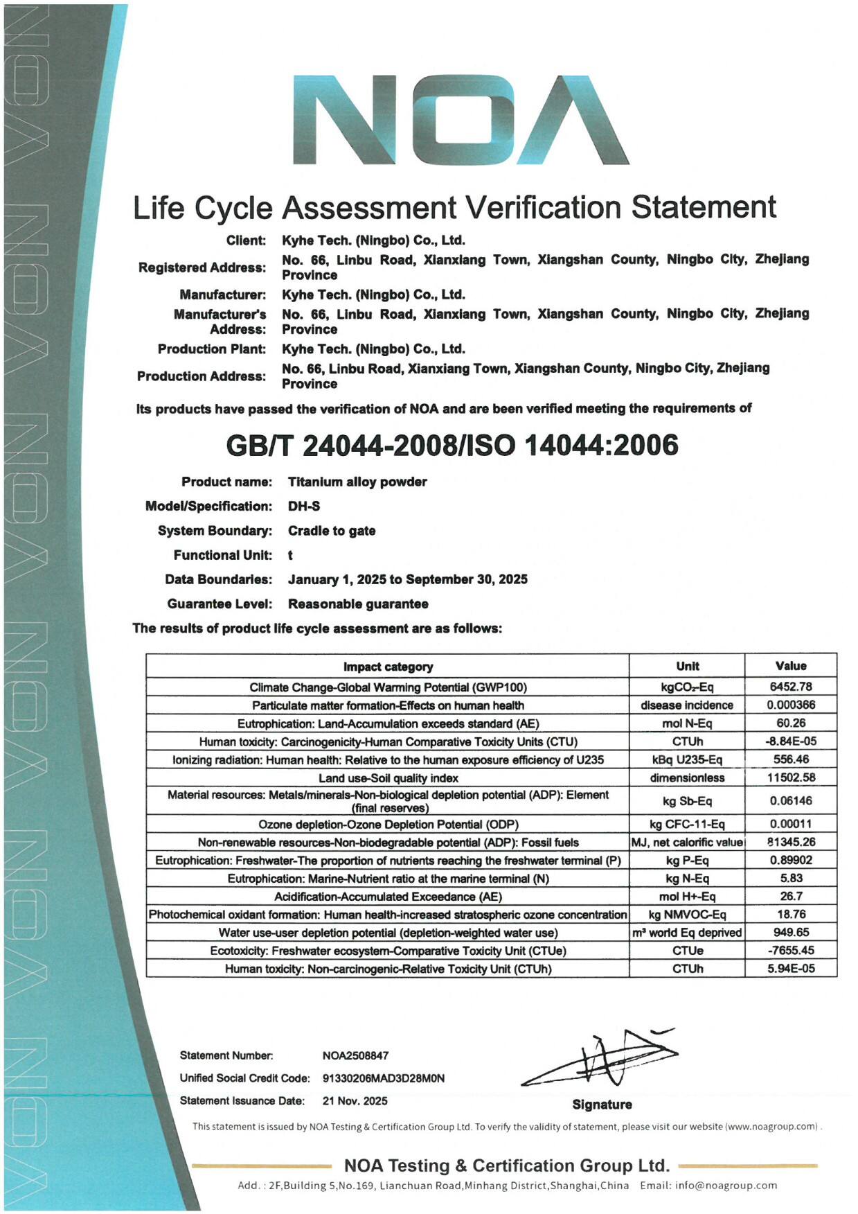 • Obtained LCA certification, advancing ESG practices